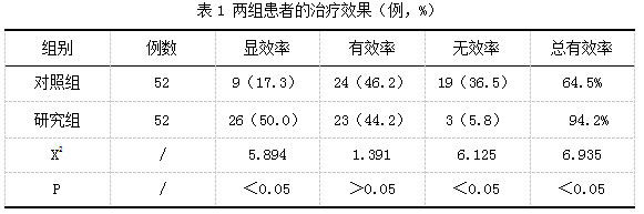 研究组患者治疗效果明显好于对照组患者(P<0.05);具体参见表1。